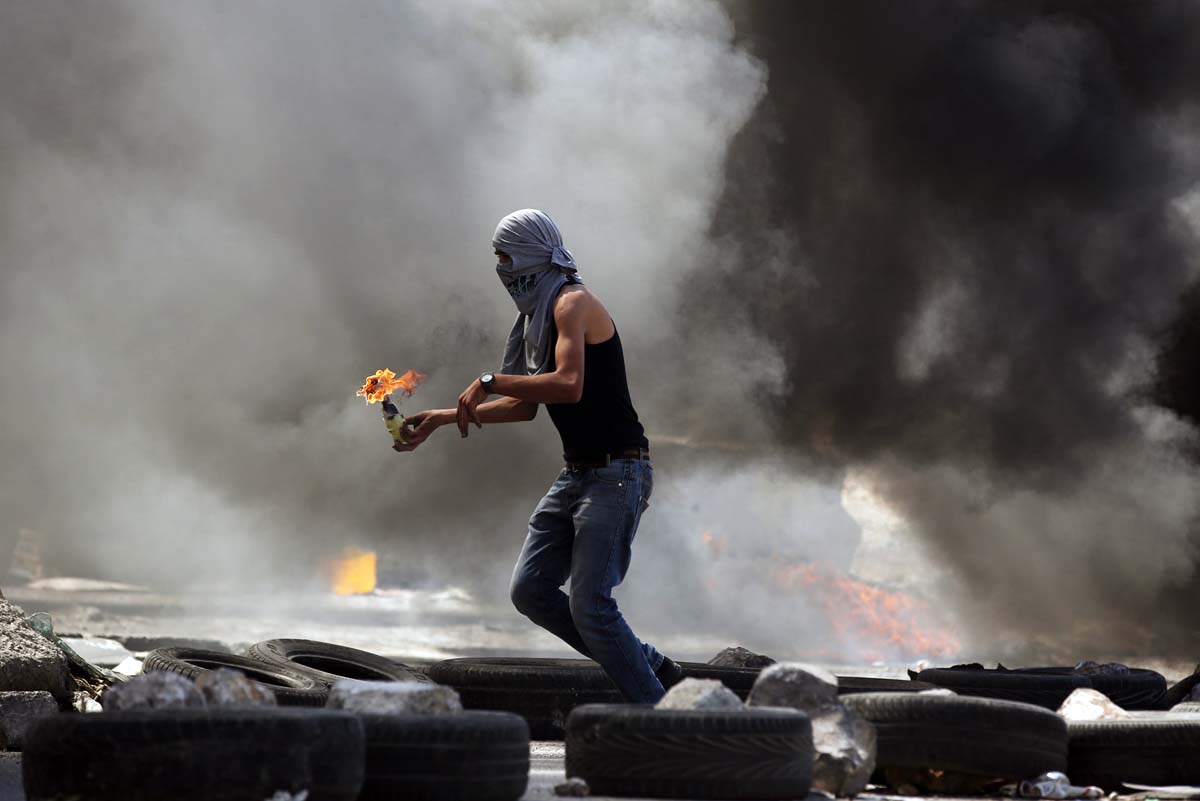 شبان يلقون زجاجات حارقة على دوريات الاحتلال في بلدة عزون