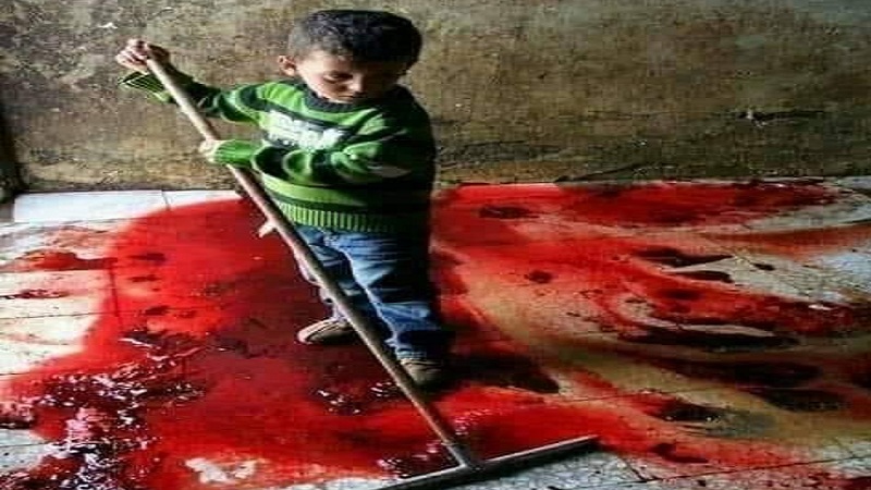 تداول النشطاء على مواقع التواصل الاجتماعي مجموعة صور يشيب لهولها الولدان، جاءت أبرزها صورة طفل يمسك بأدوات تنظيف الأرض ليمسح دماء والده وأشقائه الذين ارتقوا شهداء إثر غارة إسرائيلية على القرية البدوية في شمال غزة، والتي لاقت ردود فعل غير مسبوقة على مواقع التواصل.