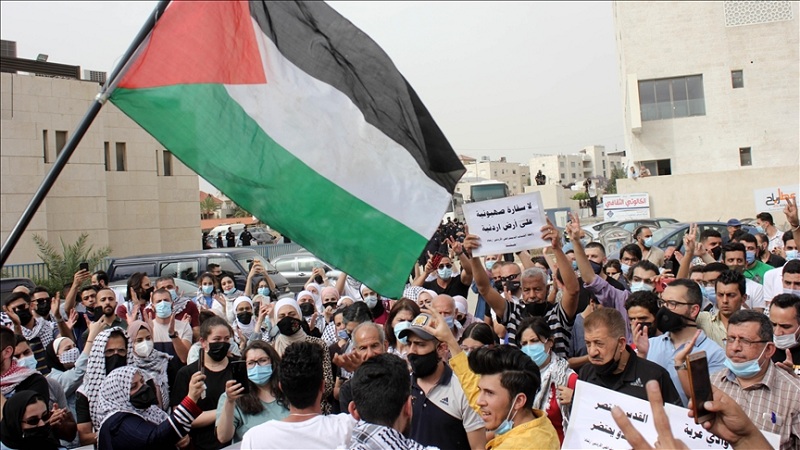 عمان: شارك آلاف الأردنيين، اليوم الأحد، ولليوم السابع على التوالي، في وقفة احتجاجية قرب سفارة الاحتلال الإسرائيلي في العاصمة الأردنية عمان، دعما للفلسطينيين في القدس وقطاع غزة.