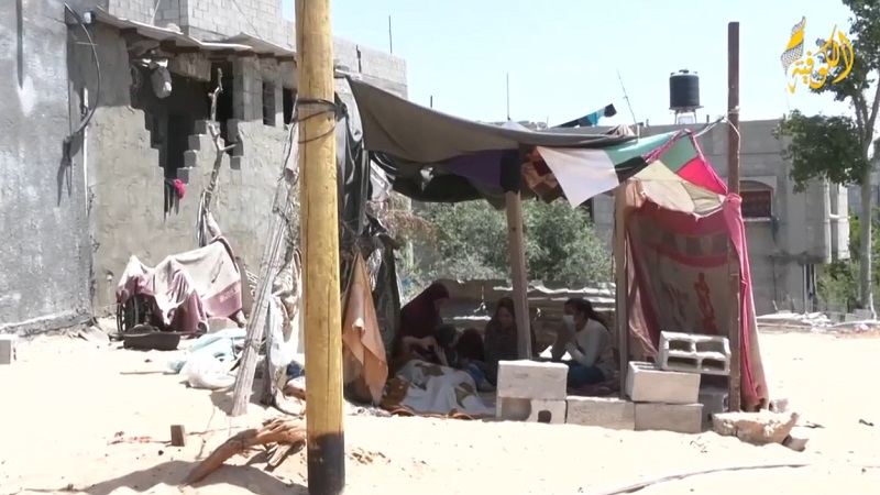 وأضافت الكفارنة، "احنا انجبرنا انه نسكن في هذا الخيمة لأنه ممكن في أي لحظة تقع الحجارة والحيطان علينا واحنا نايمين، البيت كله متهالك ولا يصلح للعيش أبداً، القصف لم يترك لنا أي مكان امن نعيش فيه".