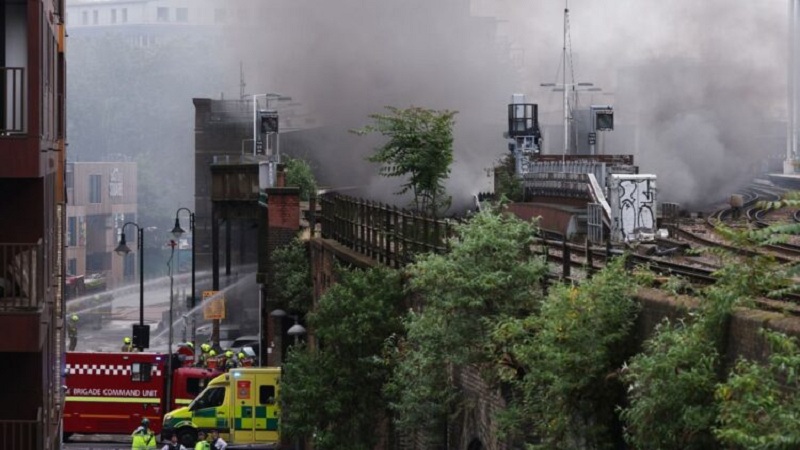 اندلاع حريق ضخم قرب محطة قطارات في العاصمة البريطانية