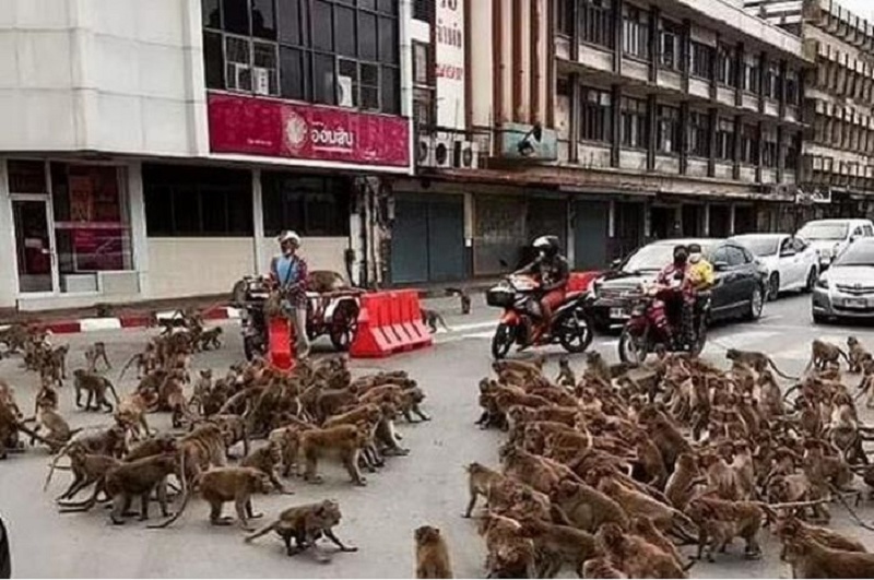 بسبب كورونا.. مئات القرود الجائعة تجتاح الشوارع التايلاندية