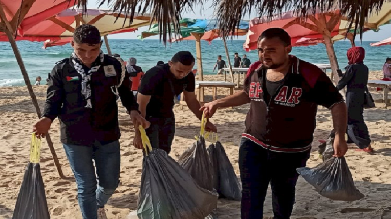 غزة: نفذت لجنة مستقبل وطن الكشفية بمجلس الشباب الفلسطيني في قطاع غزة محافظة الشمال، حملة تطوعية بعنوان "شط نظيف" على شاطئ بحر بيت لاهيا.