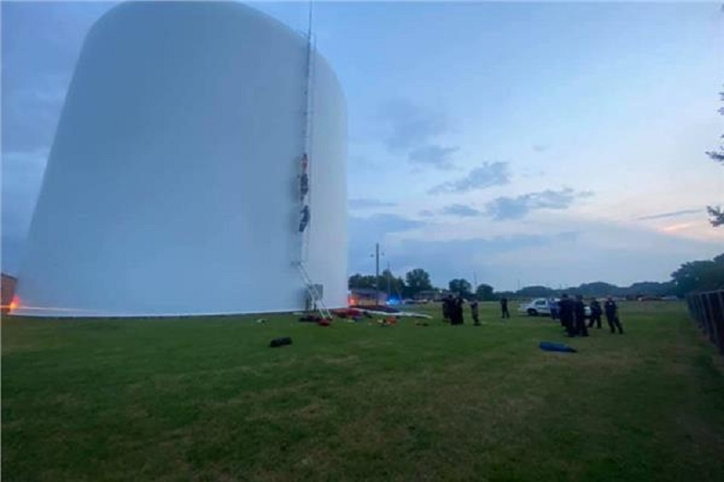 واحتوى الخزان، الذي يبلغ ارتفاعه 21 متراً، ما يقرب من 350 ألف جالون من الماء، ولدى وصولهم للمكان خلال وقت قصير، وجد فريق الإنقاذ السيدة تسبح بداخله.