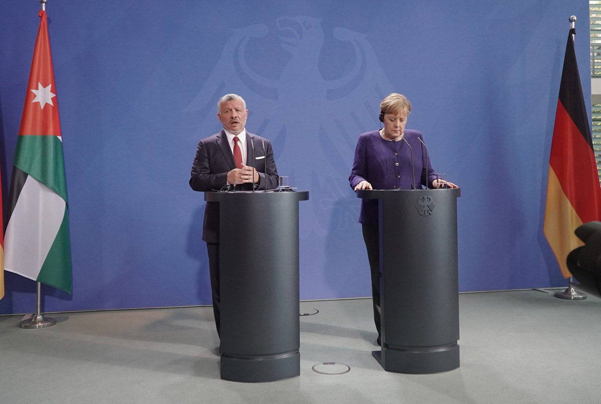 من جانبها، أشارت المستشارة ميركل إلى اهتمامها بجهود الإصلاح القائمة حاليًا في الأردن في عدة مجالات، معربة عن سعادتها للقاء جلالة الملك مجددًا في برلين لبحث العلاقات بين البلدين، والتي أصبحت أكثر متانة خلال الأعوام الماضية.