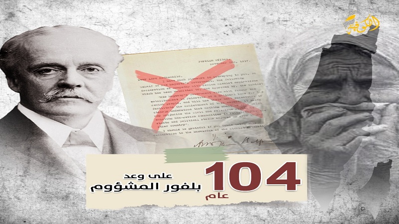 104 أعوام مضت والشعب الفلسطيني يحاول الخلاص من نكبته التي أحلت به بسبب وعد بلفور المشؤوم، الذي سلبه حقه في أرضه، ومنحها لليهود لإقامة دولتهم، في أبشع وأطول مؤامرة شهدتها البشرية، لا تزال مستمرة حتى يومنا هذا.. ورغم الرهان الإسرائيلي على انتهاء المعركة باغتصابهم الحق الفلسطيني، إلا أن الحق أبدًا لن يضيع فالمقاومة لا تزال مستمرة.. وإنا إلى أرضنا لعائدون.