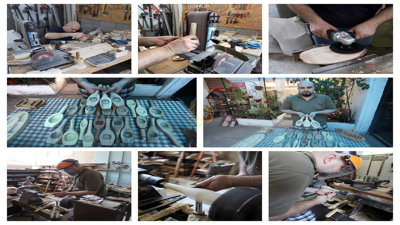 يُضيف: "في عام 2018 حوَّلت ساحة البيت لورشة، وقمت بوضع جميع الآلات والأدوات الخاصة بصنع الخشب، وبدأت في صنع التحف الخشبية بكافة أشكالها من خشب الأشجار، وخاصةً شجر الحمضيات واللوزيات والزيتون، لأنه أنسب نوع لصناعة التحف الخشبية".