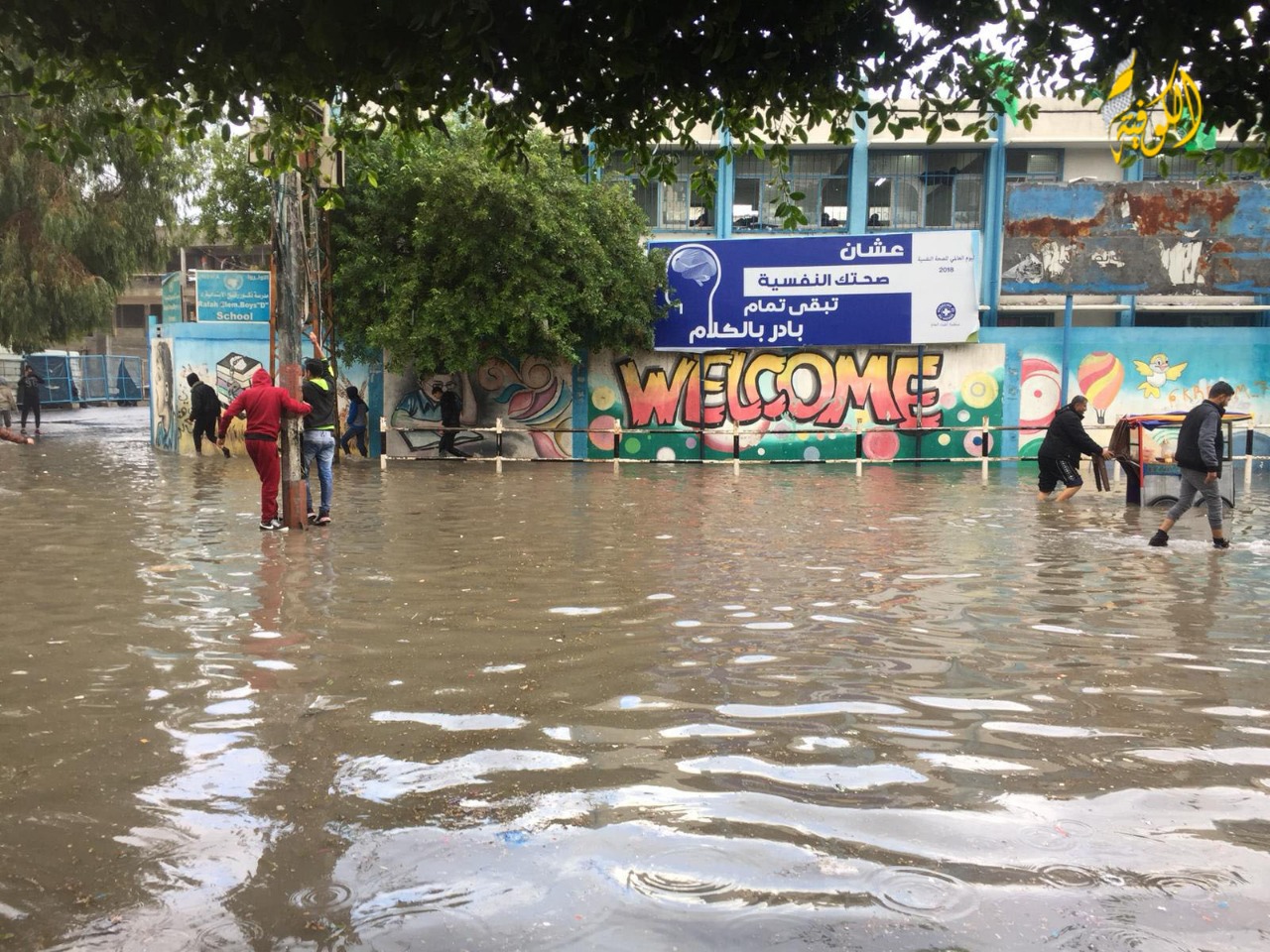 ووفقًا لمراسلنا، فإن مياه الأمطار غطت أحد الشوارع الرئيسية بمنطقة البلد بجوار مدرسة الإعدادية وسط مدينة رفح.