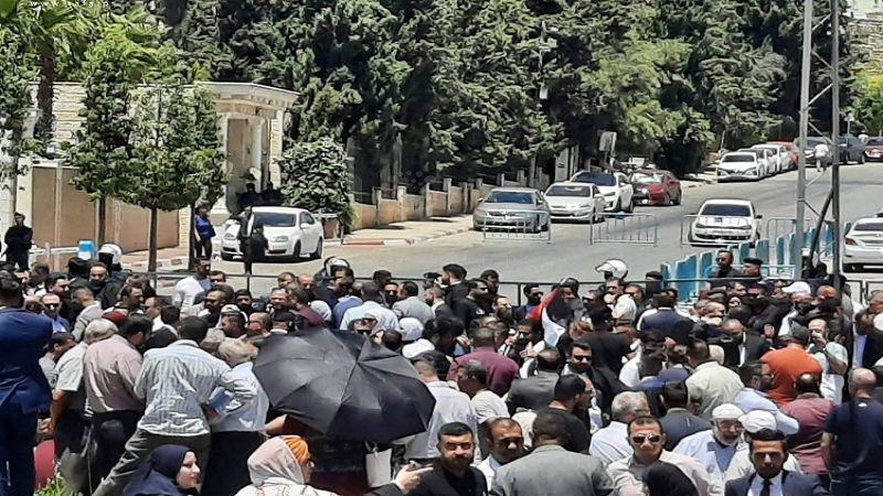 وشارك مئات المحامين من مختلف محافظات الضفة في الاعتصام، رافعين الأعلام الفلسطينية وسط هتافات تدعو لإلغاء القرارات بقوانين.