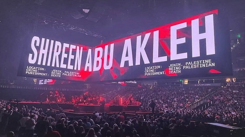 واشنطن: وضعت فرقة بينك فلويد، اسم الشهيدة شيرين أبو عاقلة على شاشة عرض ضخمة خلال حفل أقامته في مدينة نيويورك، لمناسبة مرور 100 يوم على استشهادها.