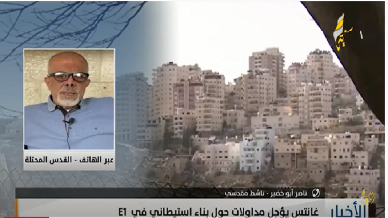 القدس المحتلة: قال الناشط المقدسي ناصر أبو خضير، إن "التغول الاستيطاني ممنهج ومدعوم من قبل الاحتلال الإسرائيلي وقادته، ويكشف الوجه الحقيقي للمشروع الاستيطاني الصهيوني على أرض فلسطين".
