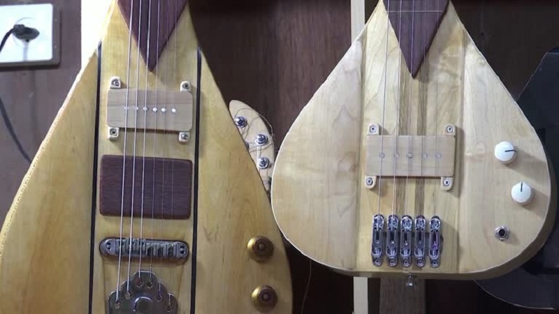 وأضاف عمري "الآلة عمليا هي خمسة أوتار فيها جيتار كهربائي اللي هو صنع المحل هون، إحنا نعمله كمان من خشب، كمان فيها نفس الأسلاك المعدنية في الجيتار، بالإضافة لأسلاك المقامات، اللي هو الثاني والرابع، الآلة مبنية على وتر الـ "لا" بدل وتر الـ "مي" زي الجيتار، وتر الـ "لا" اللي هو أكثر ملائمة للموسيقى الشرقية، والآلة معمولة من خشب القيقب والبلوط".