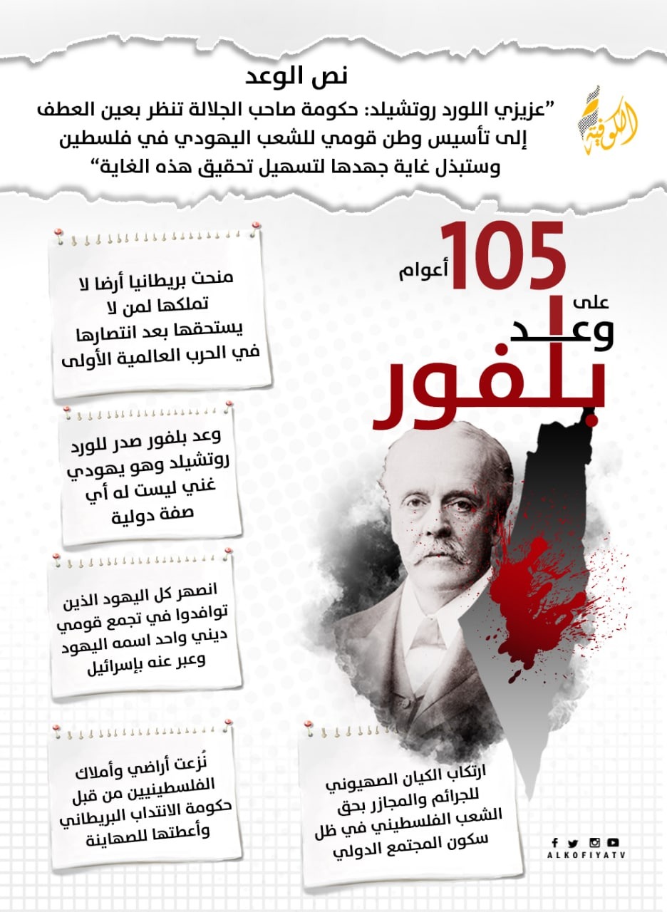 وطالب المركز بتحمّل بريطانيا المسؤولية الدولية عن هذا الوعد، بما في ذلك جبر الضرر ودفع كافة التعويضات اللازمة عن الأضرار المعنوية والمادية التي لحقت بالشعب الفلسطيني، بسببه.