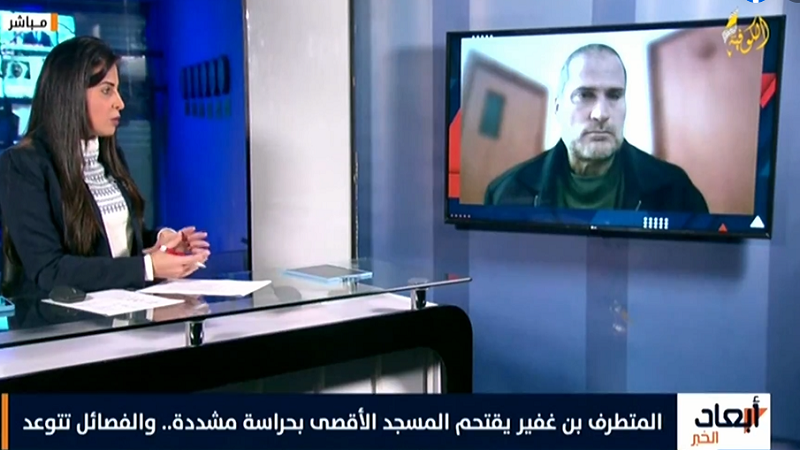 القدس المحتلة: قال المختص في شؤون القدس، خالد معالي، إن " بن غفير يتصرف ضمن منظومة فكرية وبرنامج انتخابي"، لافتًا إلى اقتحامه للمسجد الأقصى المبارك باجتهاد شخصي وإنما من خلال برنامج انتخابي أعلنه مؤخرًا.