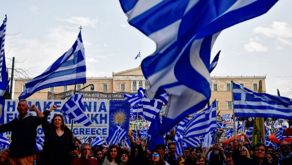 ووقعت مواجهات في العاصمة أثينا بين الشرطة والمتظاهرين في الاحتجاجات التي شارك فيها نحو 100 ألف شخص، احتجاجا على الاتفاق على الاسم الجديد لمقدونيا، وألقى خلال المظاهرات نحو 30 شابا ملثمين نجحوا في التسلل بين صفوف المحتجين، مقذوفات على عناصر الشرطة، قبل أن يحاولوا اقتحام سور البرلمان.