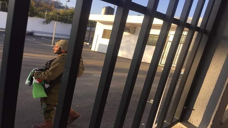 وقالت مديرة المدرسة عائشة نوباني، إن جنود الاحتلال اقتحموا المدرسة، وأزالوا العلم الفلسطيني عن سارية الطابور الصباحي.