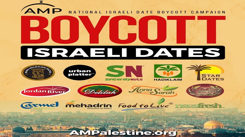 كاليفورنيا: دعت منظمة The American Muslims for Palestine «AMP»أبناء الجاليات العربية والفلسطينية بعدم الشراء او التعامل مع التمور الاسرائيلية التي تباع في الأسواق الأميركية مع حلول شهر رمضان الفضيل، والتي تسوّق معظمها على أنها منتجات فلسطينية .