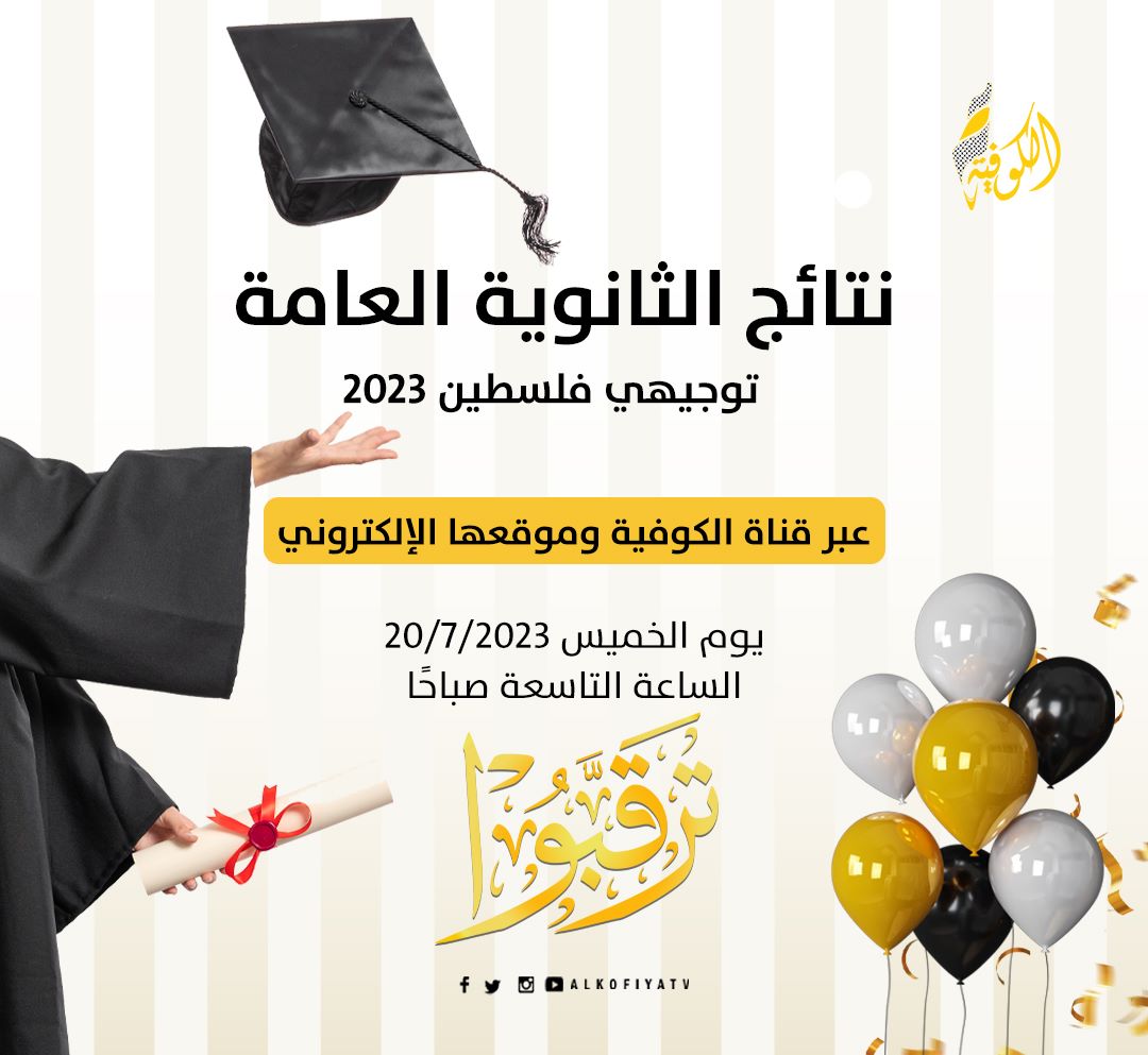 هذا ويتقدم مجلس إدارة قناة الكوفية الفضائية، والعاملين بالقناة، بأحر التهاني والتبريكات للناجحين في امتحان الثانوية العامة للعام 2023. متمنين لهم مستقبلاً زاهراً مليئا بالنجاح.