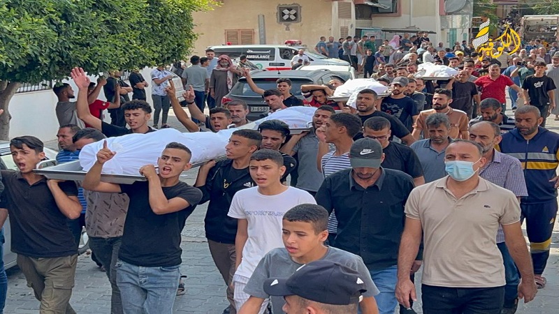غزة: تشييع جثامين 5 شهداء من عائلة أبو الريش، الذين ارتقوا فجر اليوم في قصف طائرات الاحتلال الحربية على منزلهم في خانيونس.