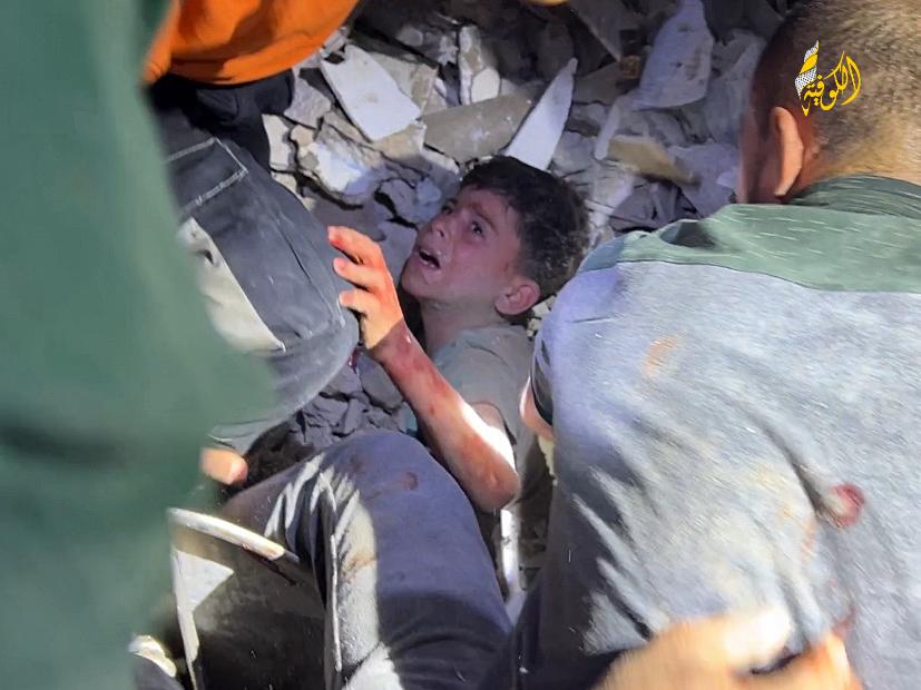 انتشال شهداء وإصابات من تحت ركام منزل لعائلة طموس غرب خان يونس