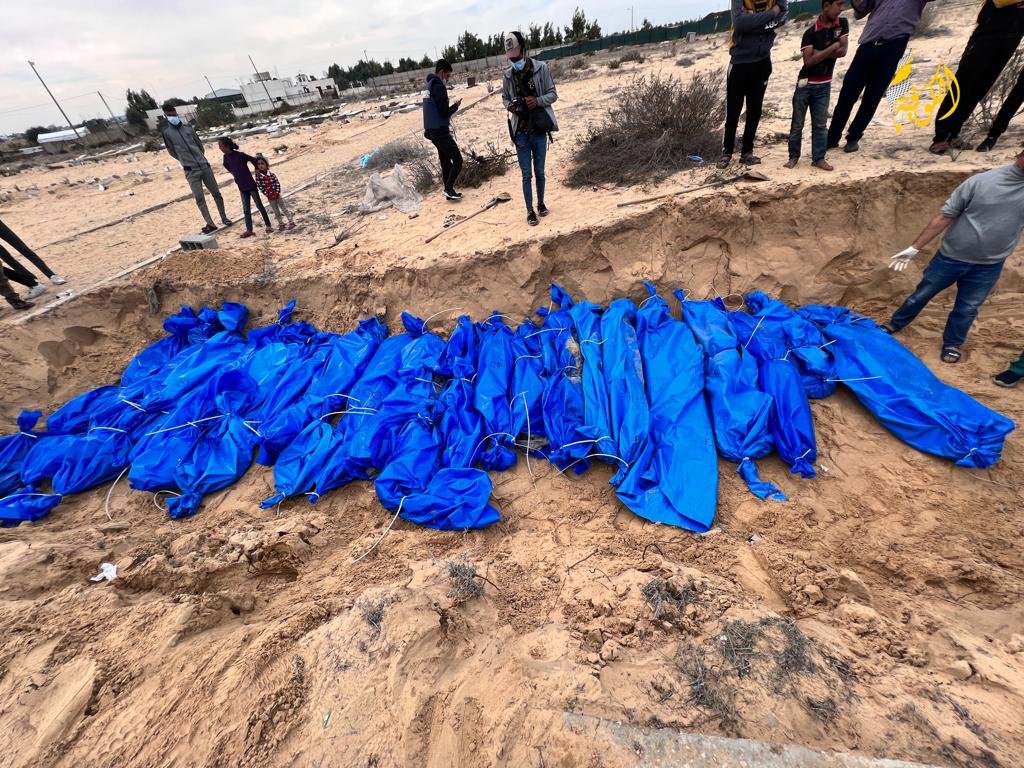 صور|| دفن 111 شهيدا داخل مقبرة جماعية في خان يونس