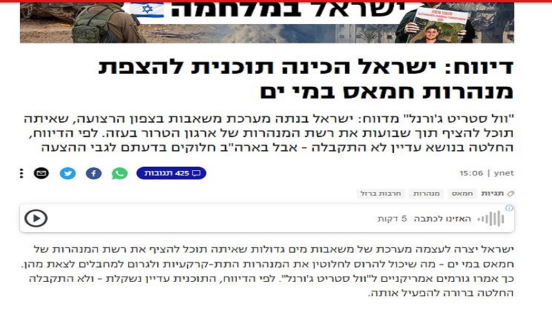وذكرت صحيفة يديعوت أحرونوت، أن إسرائيل قامت ببناء نظام مضخات في شمال قطاع غزة، ستتمكن من خلاله من إغراق شبكة أنفاق حماس في غزة خلال أسابيع، لكن لم يتم اتخاذ قرار حاسم بشأن هذا الإجراء بعد.
