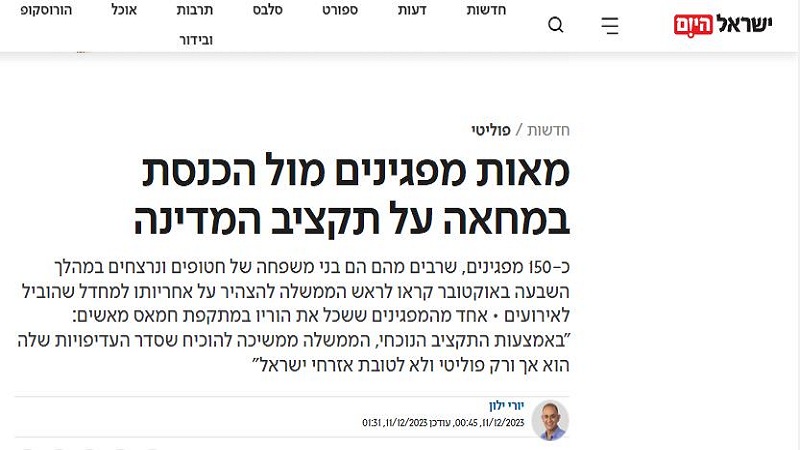 ترجمة لـ«الكوفية»: وقفة احتجاجية أمام الكنيست اعتراضا على الميزانية الجديدة