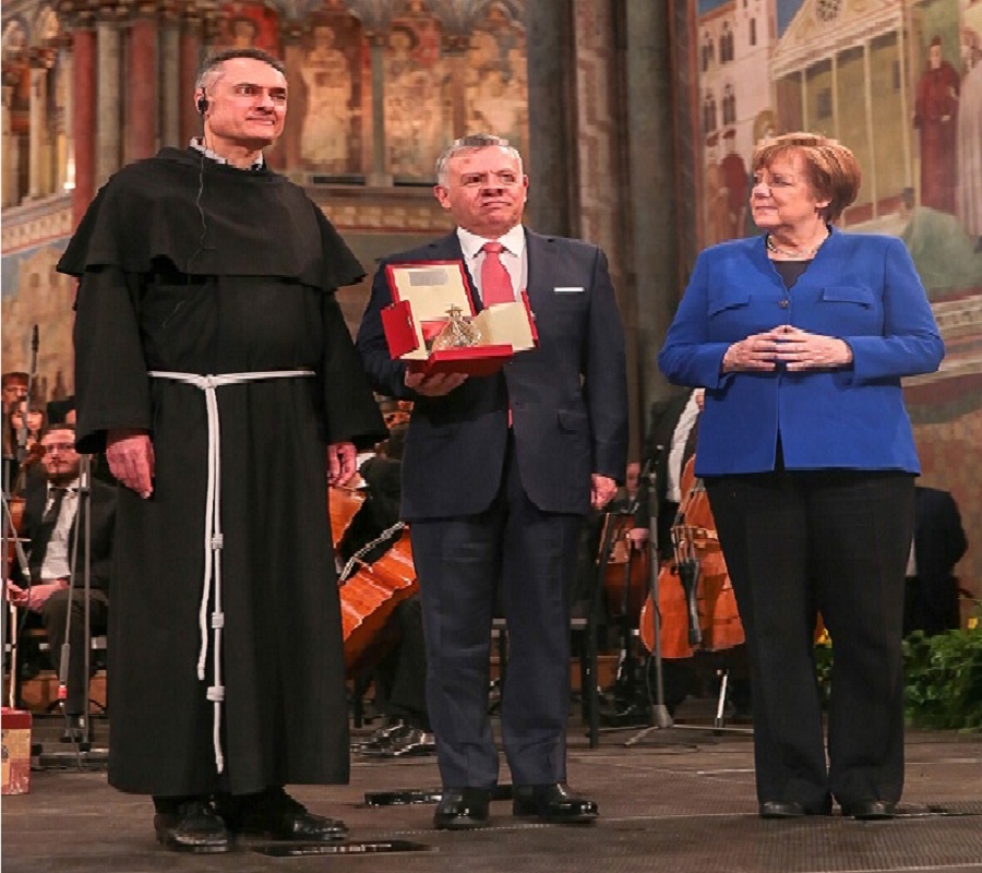 وكالات: سلم العاهل الأردني الملك عبدالله الثاني اليوم الجمعة جائزة (مصباح السلام) بمدينة أسيزي الايطالية تقديرا لجهوده في تعزيز قيم السلام في العالم.