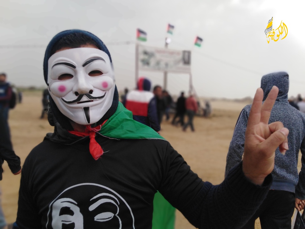 1:00 المتظاهرون يُشعلون الكاوشوك في بعض نقاط التجمع بمخيمات مسيرات العودة الكبرى