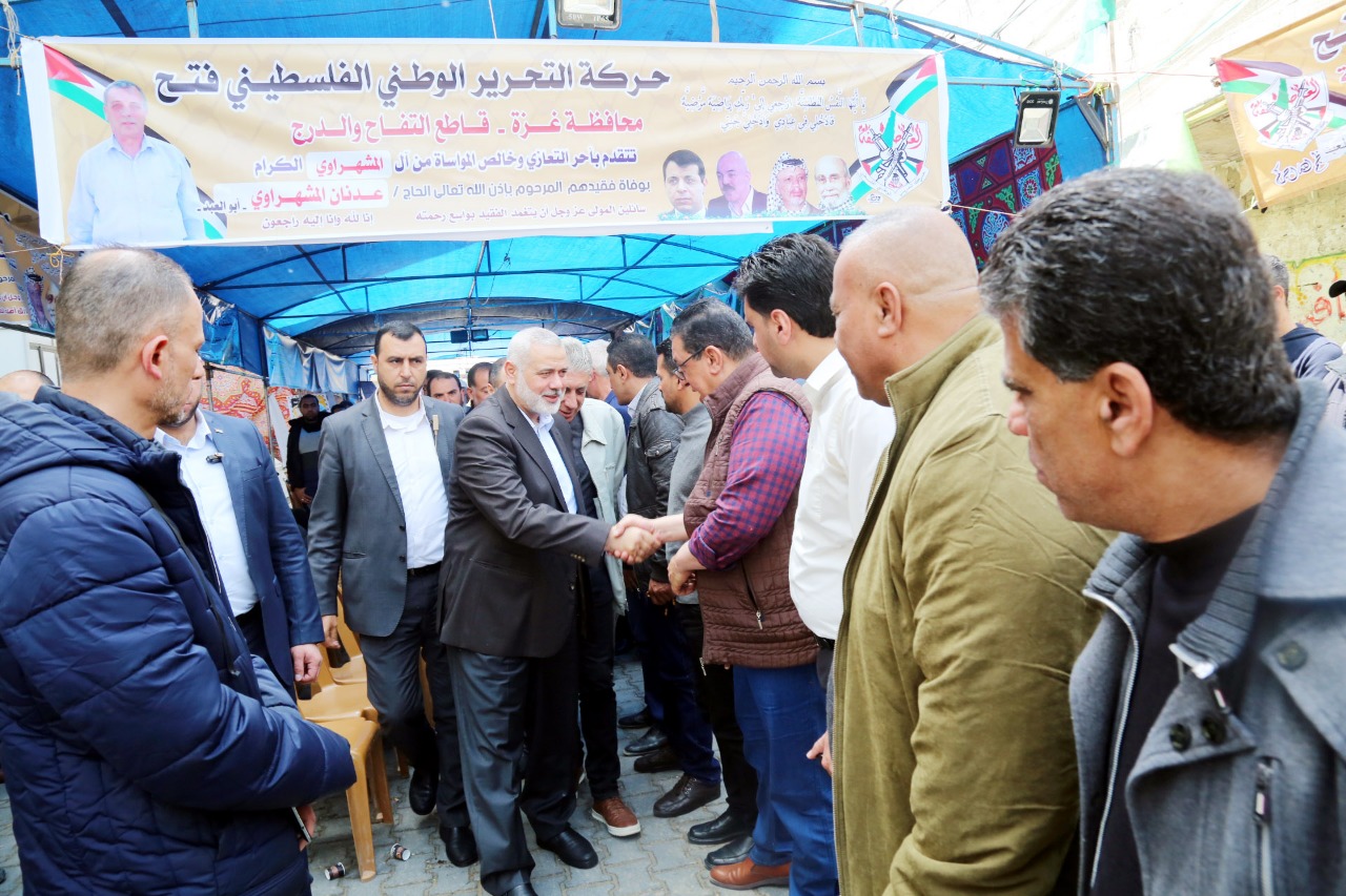 بالفيديو والصور|| هنية يشارك في عزاء شقيق القيادي سمير المشهراوي