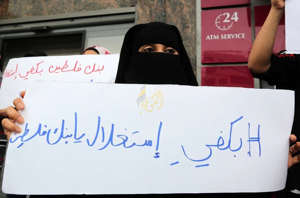 وأطلق القائمون على الحملة عنوان "بكفي استغلال يا بنك فلسطين" في خطوة تهدف لإجبار البنك على وقف تحصيل الرسوم وتأجيل القروض دون أي زيادات جديدة تطرأ عليها في ظل الأزمة المالية التي تعاني منها السلطة والنسبة المقلصة التي يتقاضها الموظف.