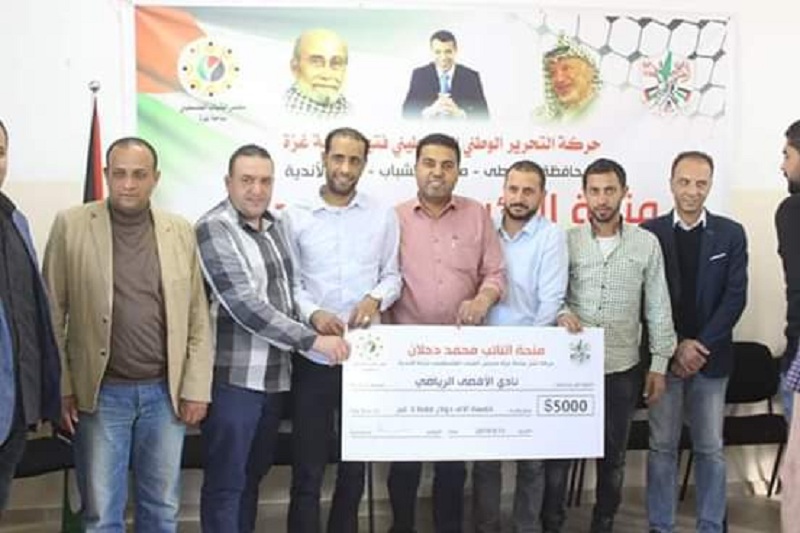 وأعربت إدارة نادي الأقصى الرياضي،" عن امتنانها وشكرها الكبير للنائب محمد دحلان لتقديمه المنحة المالية للنادي، التي ستساهم في رفع كفاءة وأنشطة النادي".