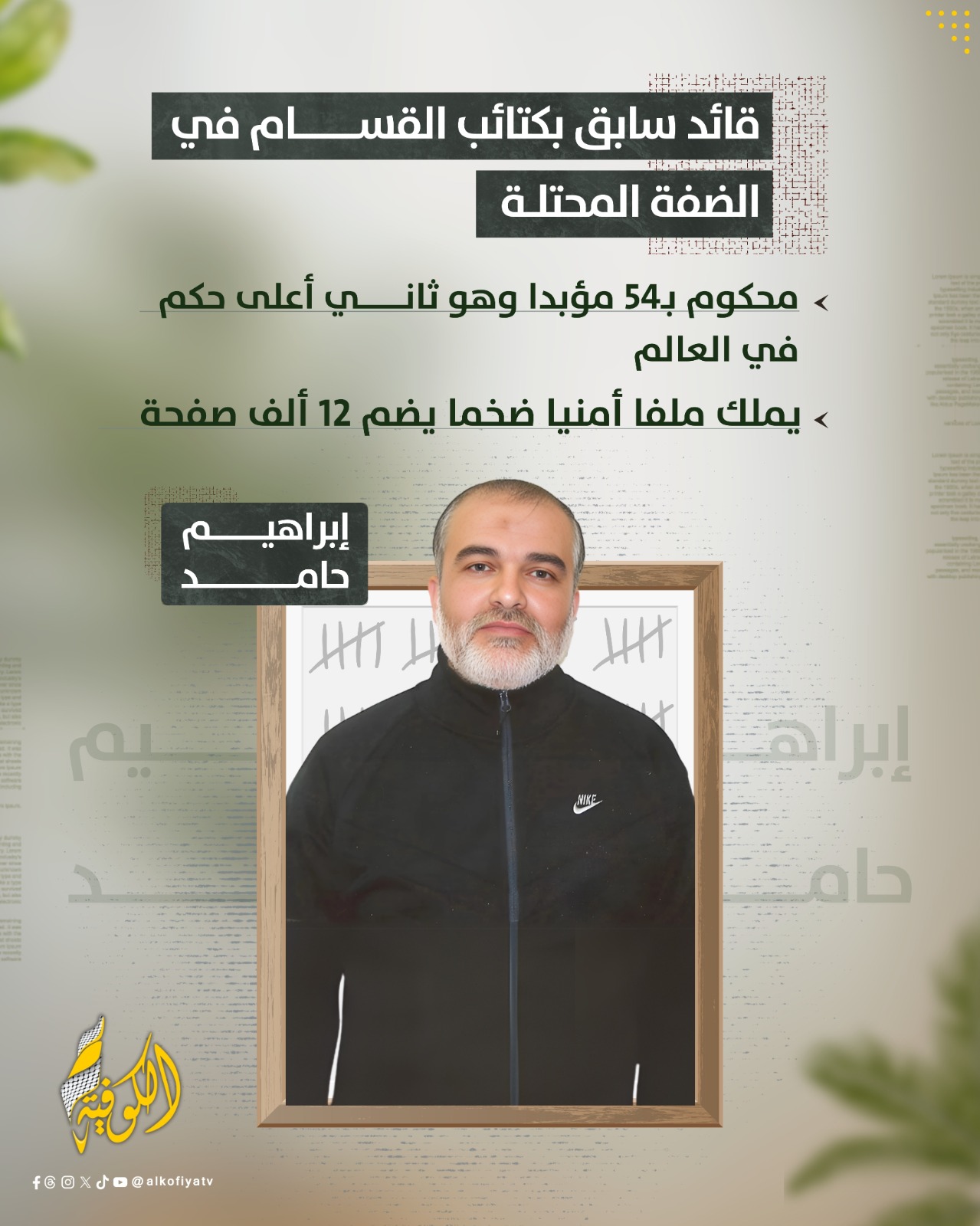 والأسير إبراهيم حامد هو القائد العسكري لكتائب القسام في الضفة الغربية، وطارده الاحتلال لسنوات طويلة قبل أن يعتقله في العام ٢٠٠٦، ويحكم عليه بالسجن المؤبد ٥٤ مرّة، بعد اتهامه بأنه أشرف على تنفيذ عمليات استشهادية أدت إلى مقتل عشرات الإسرائيليين.