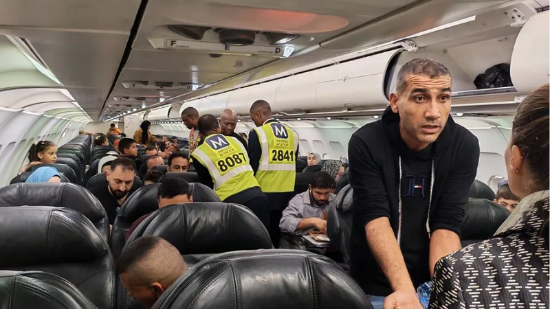 في نهاية أكتوبر، غادرت العائلة وسط حافلة صغيرة من قرب دير البلح، برفقة نحو 40 شخصاً آخرين، عبر مناطق تحت السيطرة الإسرائيلية وصولاً إلى معبر كرم أبو سالم، ثم إلى مطار رامون الإسرائيلي في النقب، ومن هناك إلى جنوب أفريقيا. خلال الرحلة، رافقتهم طائرتان مسيرتان حتى وصولهم إلى نقطة العبور.