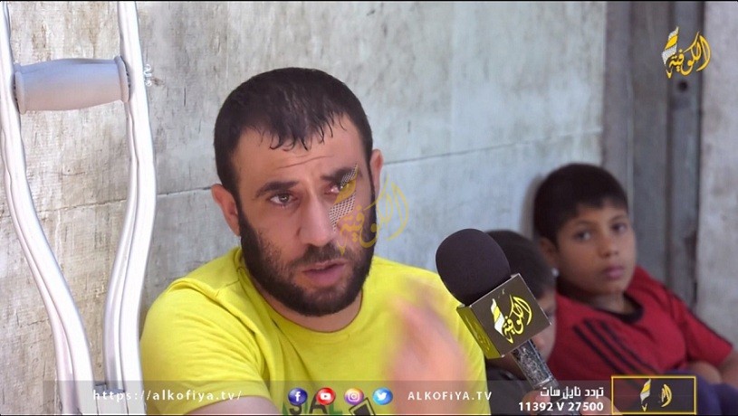 قناة "الكوفية" التقت بالجريح منتصر الأسطل، صاحب الـ38 عامًا، داخل منزله الكائن بخانيونس جنوب قطاع غزة، ذلك المنزل الذي لا يصلح للحياة الآدمية، وعلى الرغم من ذلك تسكنه عائلة مكونة من 9 أفراد، ورب الأسرة والمعيل الوحيد أصيب بعيار ناري متفجر كاد أن يؤدي إلى بتر قدمه على الفور لولا رحمة الله الذي ساق له أطباءَ مهرة، ولكنه بقي أسيرا لجهاز البلاتين الحديدي الذي زرعه المعالجون في قدمه.