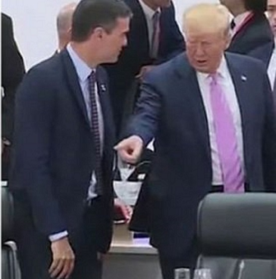 متابعات: علق رئيس وزراء إسبانيا، يدرو سانشيز، على مقطع منتشر له رفقة الرئيس الأمريكي، دونالد ترامب، خلال قمة العشرين وصفته وسائل إعلامية بـ"المحرج" أو المهين للمسئول الإسباني.