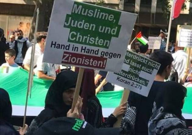 برلين: شارك الآلاف في العاصمة الألمانية برلين، مساء اليوم السبت، في مسيرات حاشدة دعمًا لمسيرة العودة ومدينة القدس.وتأتي هذه المسيرات ضمن يوم القدس العالمي من كل عام، فيما حمل المشاركون لافتات منددة بالمجازر الإسرائيلية بحق المتظاهرين السلميين في مسيرة العودة على الحدود الشرقية لقطاع غزة.