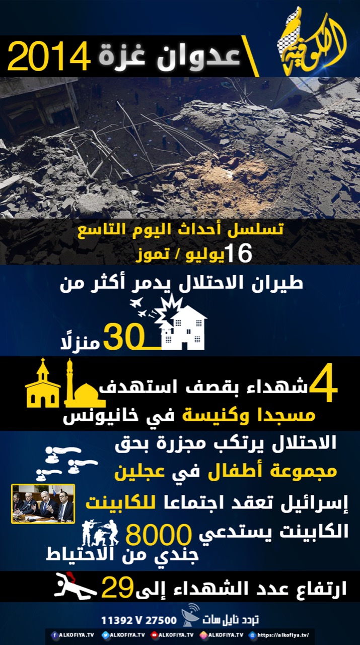 عدوان غزة 2014.. تسلسل أحداث اليوم التاسع