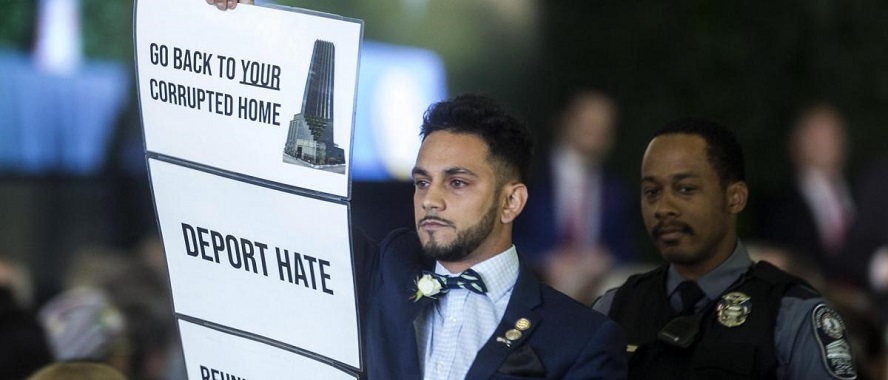 النائب الأمريكي سميرة يقاطع كلمة ترامب بفرجينيا ويهاجم سياسته العنصرية