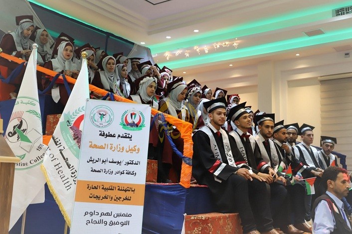 غزة: احتفلت وزارة الصحة بتخريج الفوج التاسع والثلاثين من خريجي كلية فلسطين للتمريض حيث اعتبر د. يوسف أبو الريش وكيل وزارة الصحة هذا الفوج هو اضافة ومفخرة على طريق تطوير مهنة التمريض, مشيدا بكلية فلسطين للتمريض والذي تواصل بخطى ثابتة فصول الانجاز والعطاء واستثمار مساحة واسعة في تنمية وبناء الكوادر التمريضية القادرة على حمل رسالة سامية انسانية لها من المكانه الكبرى في المنظومة الصحية , ولعل قرار تحويل وحدة التمريض الى ادارة عامة لهو خير دليل أن خطى التقدم بهذه المهنة مستمر , كما وتقدم د. ابو الريش بالتهنئة القلبية الحارة للخريجين وذويهم والى كلية فلسطين للتمريض ممثلة بالعمادة وأعضاء الهيئة الاكاديمية والتدريسية على اخلاصهم وطيب انتمائهم في تتويج هذه الكوكبة.