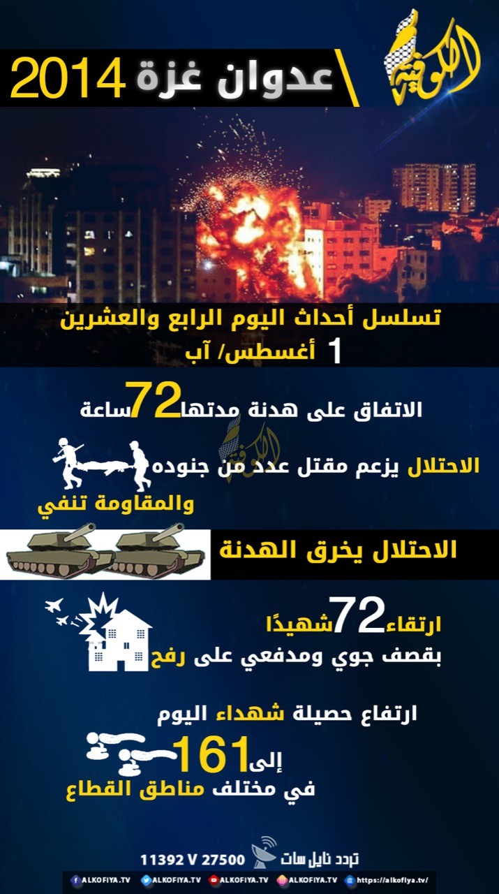 عدوان غزة 2014.. تسلسل أحداث اليوم الرابع والعشرين
