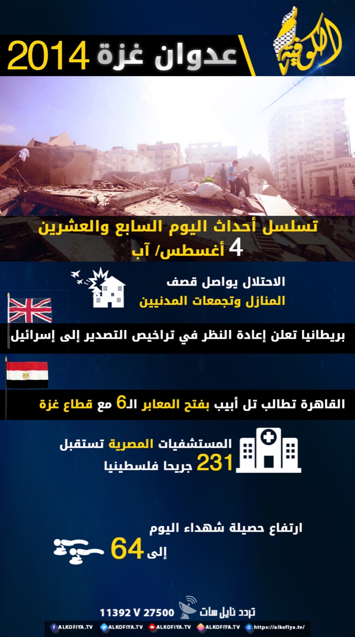 عدوان غزة 2014.. تسلسل أحداث اليوم السابع والعشرين