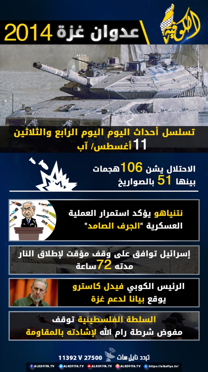 عدوان غزة 2014.. تسلسل أحداث اليوم الرابع والثلاثين
