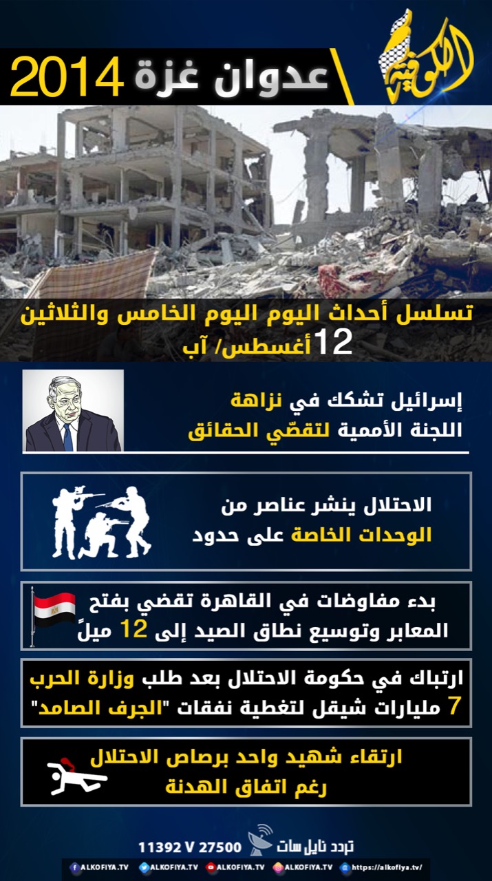 عدوان غزة 2014.. تسلسل أحداث اليوم الخامس والثلاثين