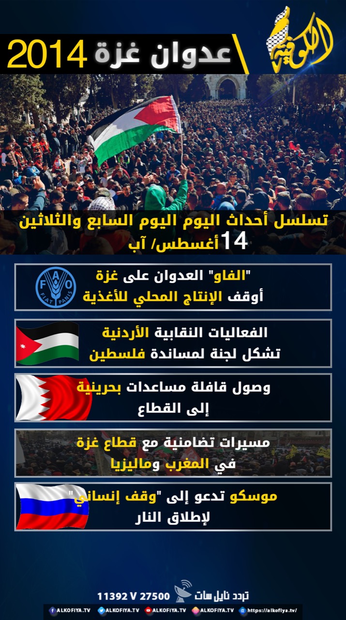 عدوان غزة 2014.. تسلسل أحداث اليوم السابع والثلاثين