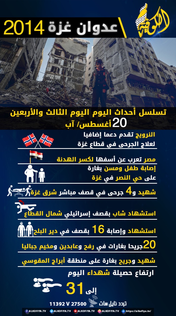 عدوان غزة 2014.. تسلسل أحداث اليوم الثالث والأربعين