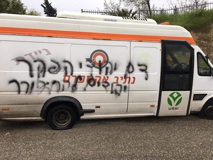 مستوطنون يعطبون مركبات ويخطون شعارات عنصرية غرب سلفيت