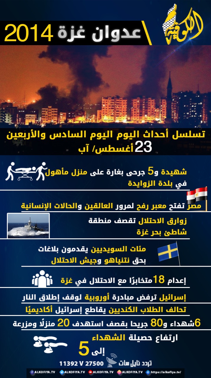 عدوان غزة 2014.. تسلسل أحداث اليوم السادس والأربعين