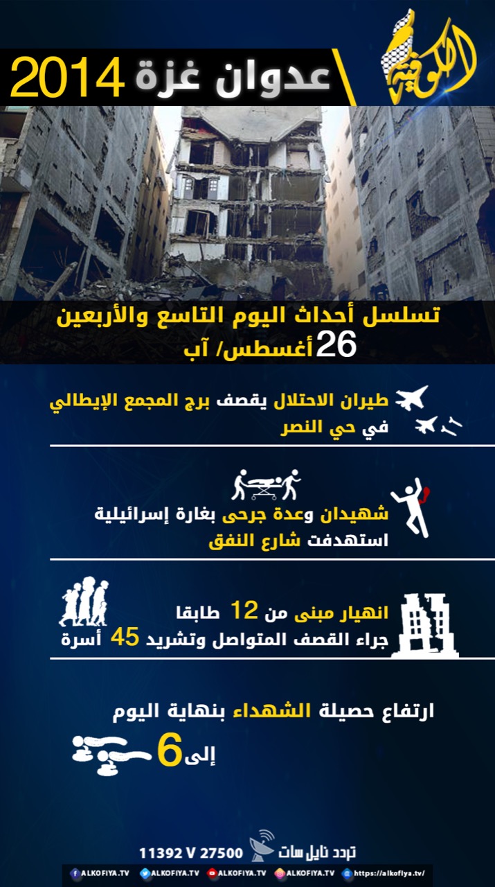 عدوان غزة 2014.. تسلسل أحداث اليوم التاسع والأربعين