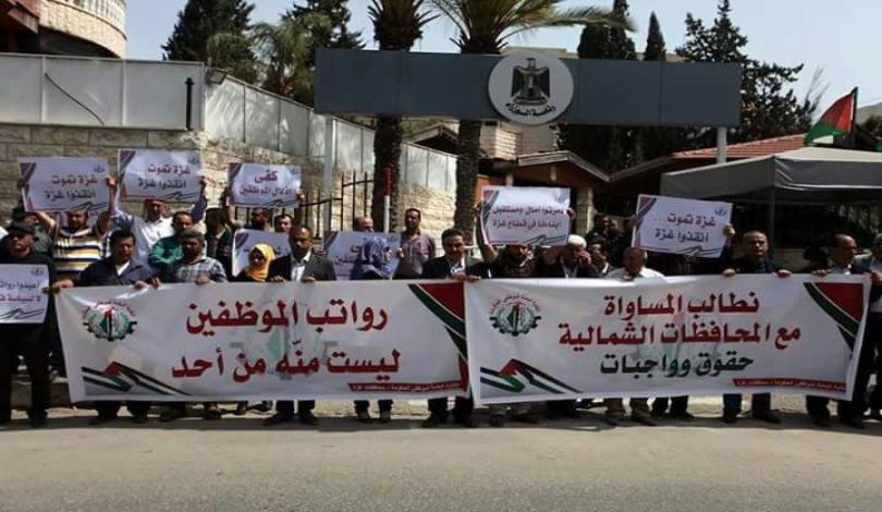 عبّر موظفو السلطة في قطاع غزة عن غضبهم واستياءهم جراء السياسة التي تتبعها الحكومة الفلسطينية مع سكان قطاع غزة، خاصة وأنها أشبعتهم وعودات وتطمينات بأن نسبة الصرف ستكون مماثلة للمحافظات الشمالية دون أي تمييز، وكانت الصدمة حين توجهوا للبنوك ليجدوا نسبة الصرف ثابتة ولم تتغير ليتضح أن مسلسل التمييز والتلاعب بمعاناة الموظفين لا تزال قائمة.